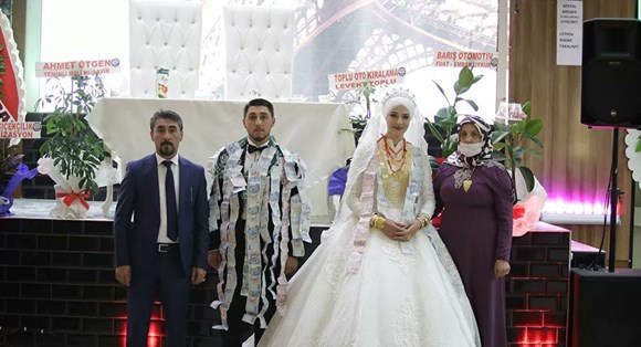 Kovit 19 gölgesinde muş'ta gerçekleştirilen düğün yasa gereği 1 saat sürmüş. Bu bir saatin 40 dakikasını takı töreni oluşturmuş ve genç çifte 1 milyon Türk Lirası değerinde takı ve para takılmış. 40 Dakika içerisinde bu kadar para kazanan pek insan yoktur sanırım.