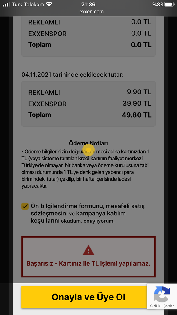 exxen kartınız ile tl işlemi yapılmaz çözümü