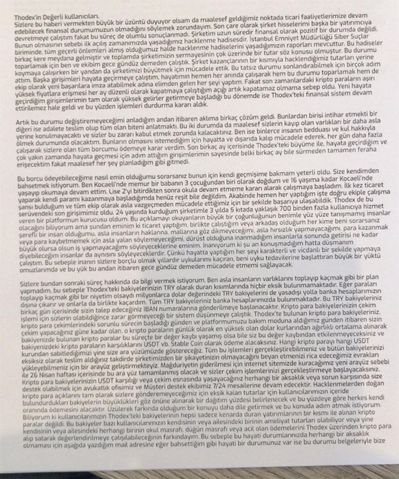 Thodex kurucusu Faruk Fatih Özer'den mektup.