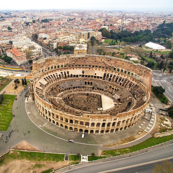 Kolezyum, İmparator Vespasianus tarafından M.S. 70'li yıllarda yapımına başlanmış, M.S. 80'de Titus döneminde tamamlanmıştır. Kolezyum adını, önünde bulunan İmparator Nero'nun günümüze ulaşamamış “Colossus Neronis” heykelinden aldığı düşünülmektedir. Kolezyum'da gladyatör dövüşlerinin yanı sıra deniz savaşları canlandırmaları, hayvan avlama gösterileri, idam törenleri, klasik mitolojiye dayanan tiyatro gösterileri de gerçekleştirilirmiş.