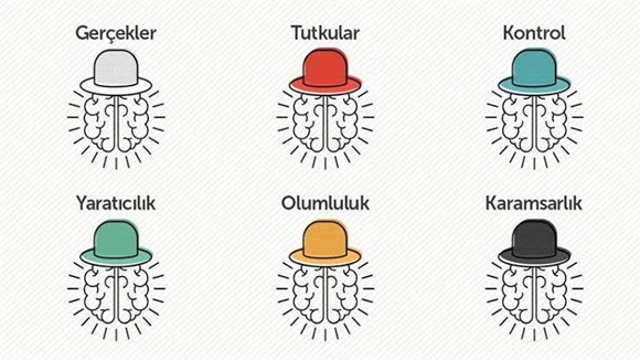 Kırmızı Şapka: Duygusal, kişisel şapkadır. Kişisel duygular bu şapkada hesaba katılır. Görüşülen konu ile ilgili olarak, katılımcılara hiçbir dayanağı olmasa da hislerini söyleme şansı verilir.