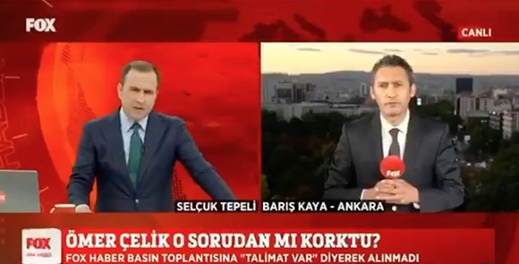 FOX Haber muhabiri Barış Kaya, AKP Sözcüsü Ömer Çelik'in düzenlediği basın toplantısına alınmadı.