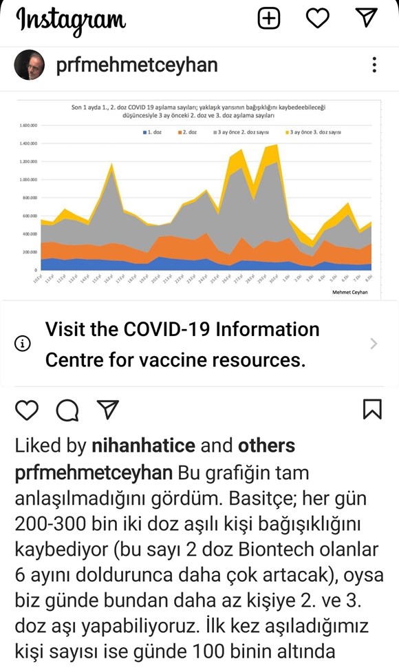 Prof. Dr. Mehmet Ceyhan: “Her gün 200-300 bin iki doz aşılı kişi bağışıklığını kaybediyor.”