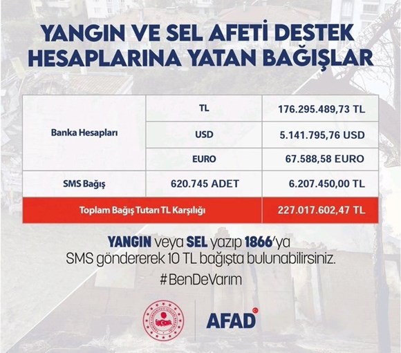 Afad yangın ve sel felaketlerinden sonra halkımız tarafından yapılan bağışların miktarını paylaşmış. Şahıslardan çok şirketler yapmıştır tabi ama yinede halk olarak kötü gün dostu olduğumuzun ispatı gibi. Peki siz ne düşünüyorsunuz arkadaşlar?